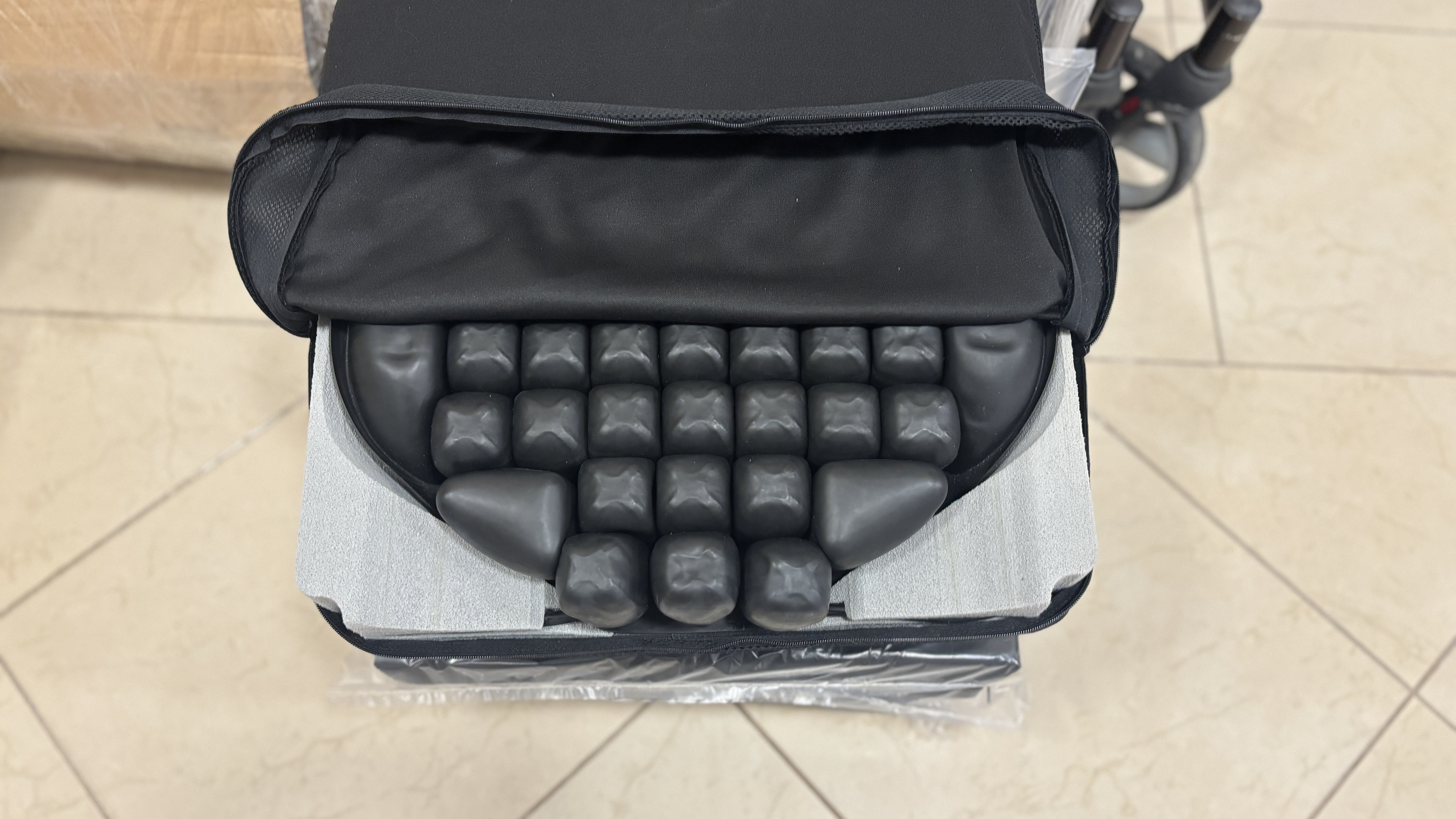 A beépített ROHO levegőcellás betét lehetővé teszi, hogy a használó teste kényelmesen belesimuljon a párnába, így jobb nyomáselosztást biztosít.